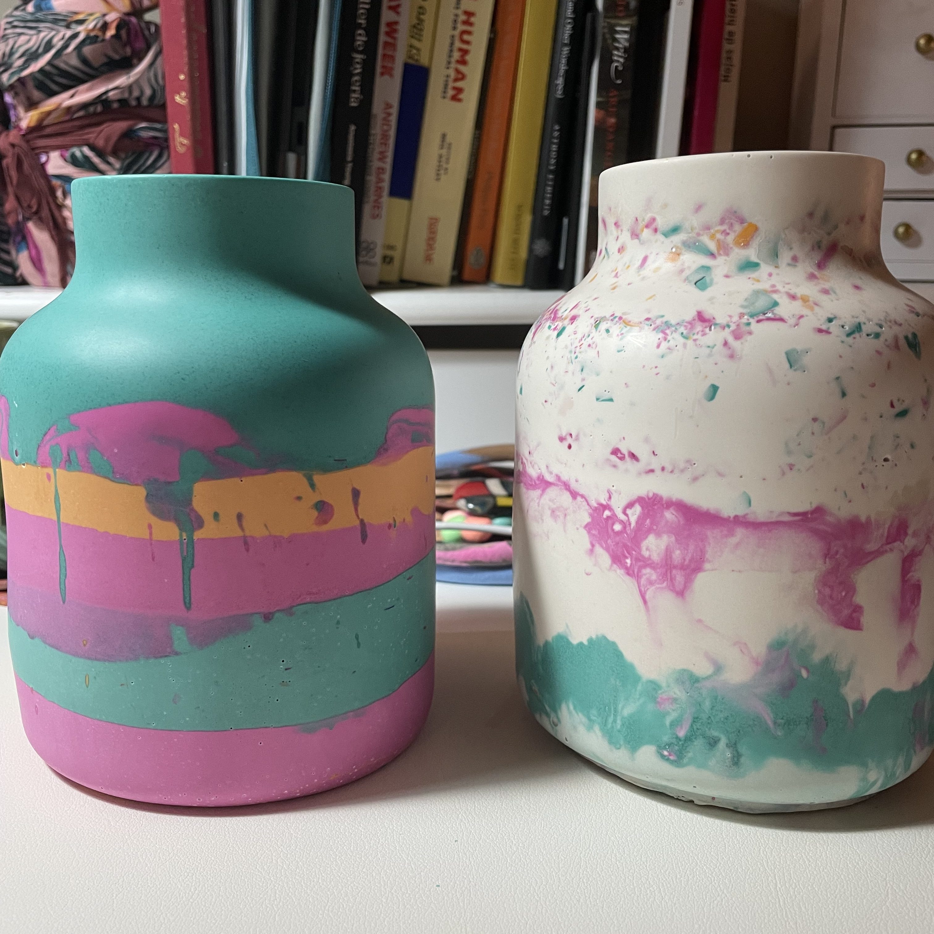 Jesmonite is my favourite material – it achieves a lovely smooth and silky texture, it is durable and it is an eco-resin. Mostly used for homeware accessories, my goal is to make the majority of Vibrant G jewellery with this material. I am continuously researching designs to achieve the most durable whilst still lightweight jewellery made of jesmonite.